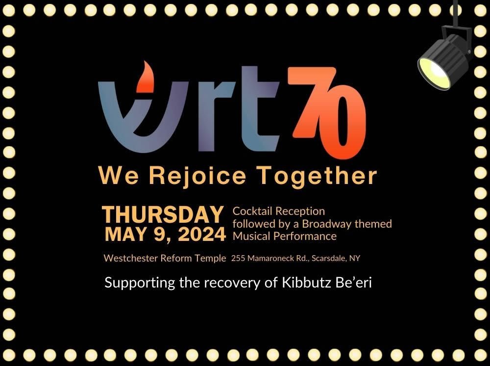 We are proud to support WRT and Kibbutz Be'eri - The Elsner Family Always happy to be under the WRT roof. Thank you to EVERYONE who makes this such a SPECIAL place!! Happy 70th!!!! - Audrey Weinberg Best Wishes to Westchester Reform Temple on its 70th! Eugene & Ronee Weissman