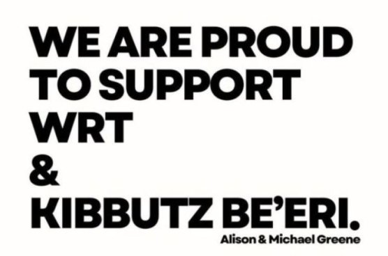 We are proud to support WRT and Kibbutz Be'eri Cates Claman Family We are proud to support WRT and Kibbutz Be'eri Karen and Mark Fried and Sullivan